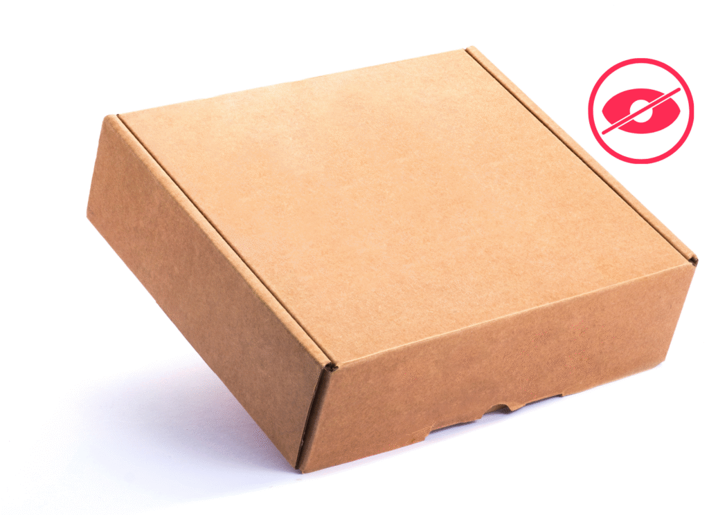 Tanto a caixa do produto quanto a embalagem são discretas e não fazem nenhuma referência à funcionalidade do produto.